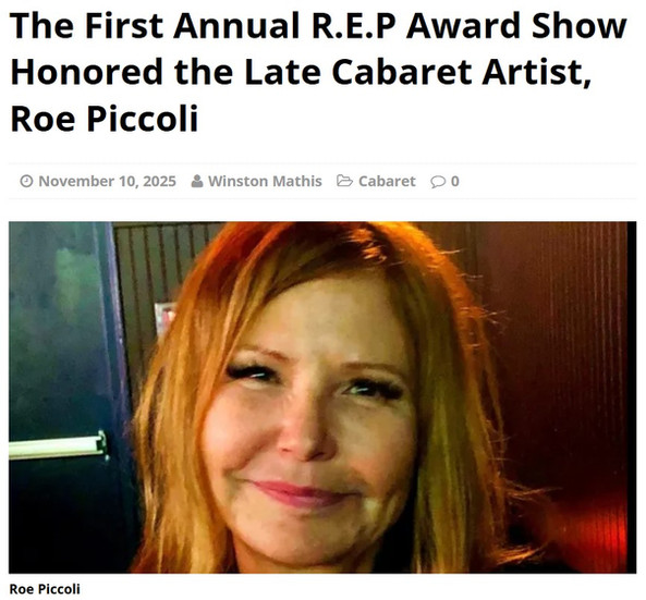 Last, but certainly not least: a huge, heartfelt THANK YOU to Carl Sari for creating this loving and everlasting tribute to the love of his life, Roe, with the generous intention of providing a meaningful boost for cabaret artists like myself to flourish and grow. What's more, The 2nd Annual R.E.P. Award is already planned for November 21, 2026, and I couldn't recommend it more - so visit https://www.rosemarypiccoli.com/ for information on how to submit, fellow cabaret babies!!